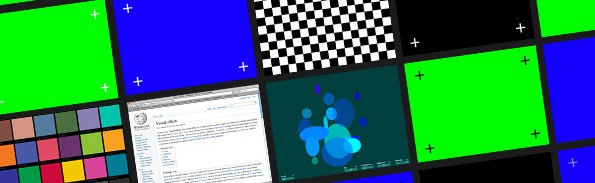I crashed together this little app that should cover most screen insert needs on set. Greenscreen and bluescreen with various tracking markers, a checkerboard, Macbeth chart and simulated website.